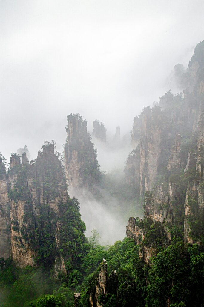 Las Montañas de Zhangjiajie, situadas en la provincia de Hunan, han sido testigos de la historia china y han desempeñado un papel importante en la mitología y la cultura local. Estas montañas, también conocidas como las «Montañas de Avatar», son famosas por su apariencia surrealista y fueron la inspiración para el mundo flotante de la película «Avatar» de James Cameron.